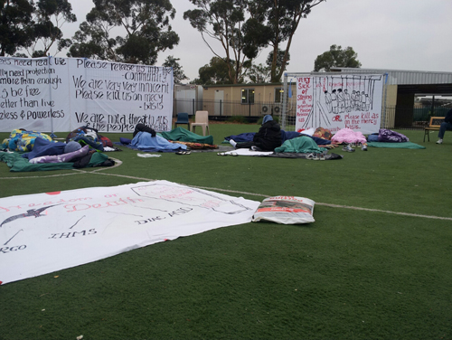 The refugees are striking outside in the detention centre's yard and are flying banners. “There is one that shows many people hanging. That is what we want to happen to us if we are not released,” the refugees said in an open letter sent to the Refugee Action Collective.