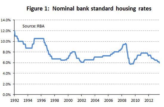 A long-term trend in the economies of Australia and similar countries has been a steady fall in inflation over the last 40 years, but we have not necessarily changed our thinking to accommodate that change. Back when inflation was around ten per cent and mortgage rates were around fourteen per cent, the initial burden of mortgage repayment was tough, because then as now people tended to borrow for their houses as much as they thought they could repay, but as incomes rose in line with inflation that burden soon whittled away. Many baby-boomers, in the days when fixed rates were standard, benefited very well (at the expense of lenders) from the huge inflationary bout of the 1970s.