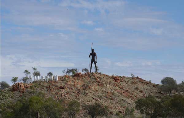 Ryan pointed to the support of a local Aboriginal woman, Betty Pearce to support his claim and noted the existence of the Gathering Garden, located outside the Council’s building, and the well knowne Anmatjere Man statue (below), which shows a large Aboriginal man holding a spear.
