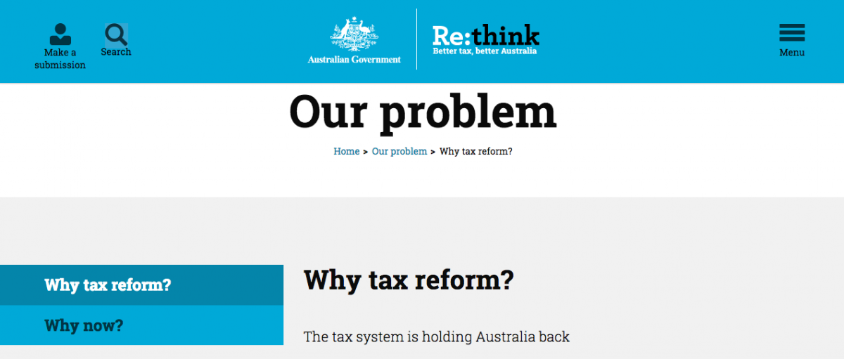 “Why tax reform?” the paper’s Better Tax website rhetorically asks. “The tax system is holding Australia back.”